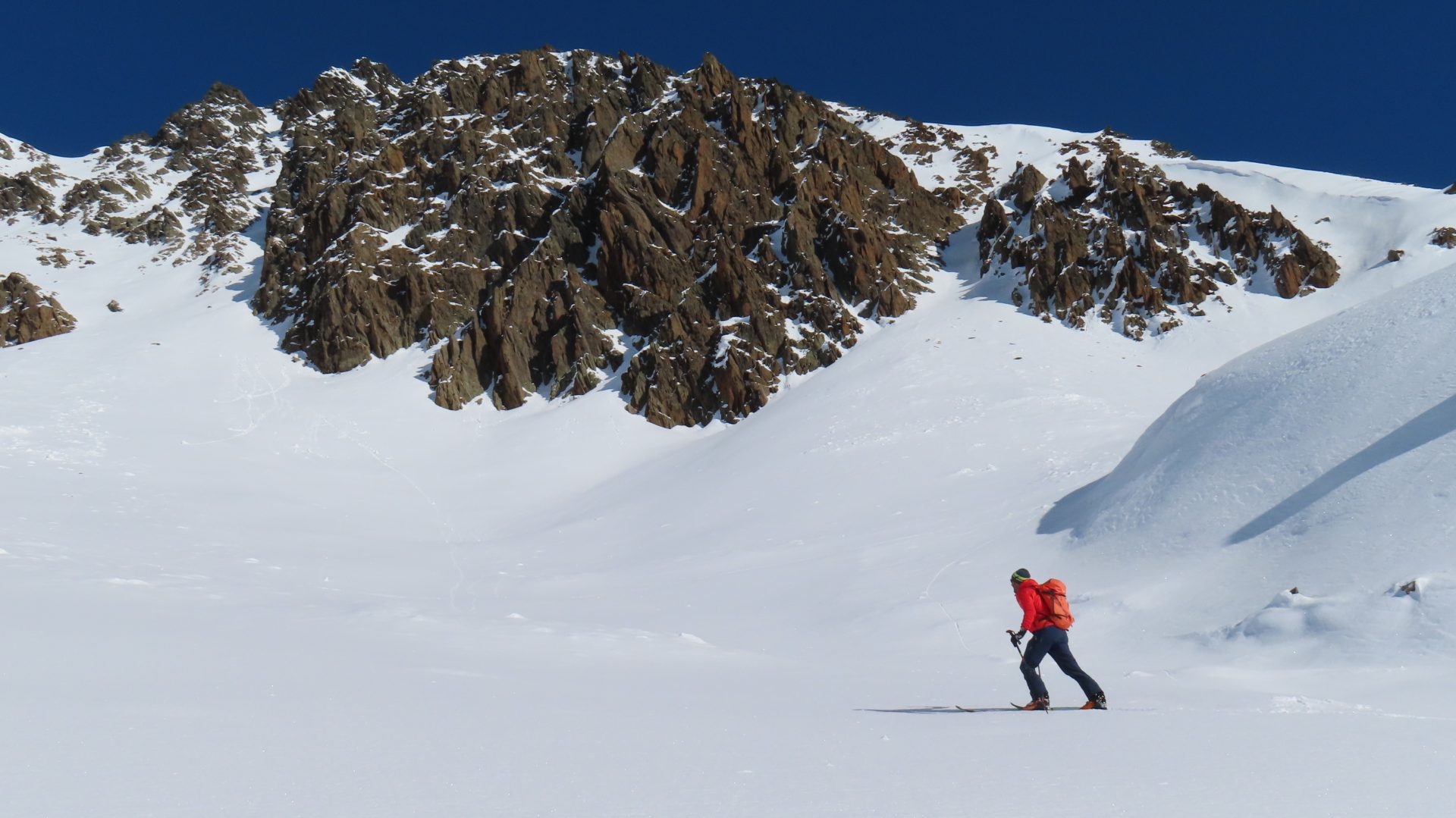 Lawinen können vereinzelt mittlere Größe erreichen, es ist aber immer noch wichtig die Absturz- und Mitreißgefahr zu beachten, die von Lawinen ausgeht. Natürlich muss man auch weiterhin bedenken, dass aufgrund der unterdurchschnittlichen Schneelage Verletzungsgefahr durch kaum oder nur knapp eingeschneite Steine besteht.