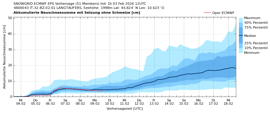 Gestern Vormittag, am 3. Februar, hat eine Störung etwas Neuschnee gebracht. Es fielen bis zu 10 cm Schnee, lokal auch etwas mehr. Der Schneefall war von starkem bis stürmischem Wind aus südlichen Richtungen begleitet.