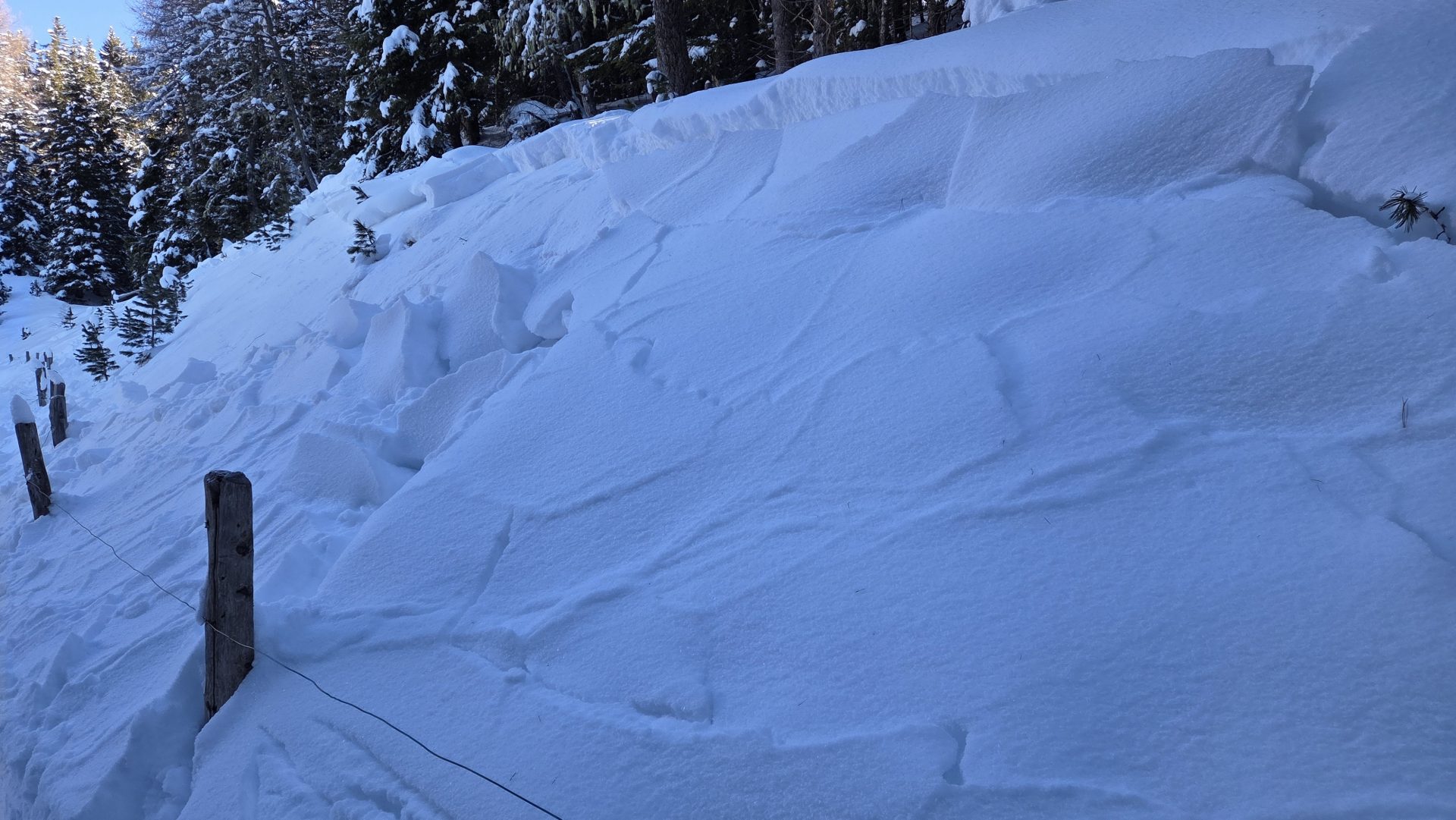 Die vielen Alarmzeichen, die uns in der vergangenen Woche aus dem Gelände gemeldet wurden (Risse in der Schneedecke, Setzungsgeräusche, spontane Lawinen sowie Fernauslösungen) haben die, an vielen Stellen, geringe Schneedeckenstabilität bestätigt. Wegen der insgesamt meist wenig mächtigen Schneehöhe haben wir uns vorwiegend mittelgroße Lawinen (Größe 2) erwartet. Diese Einschätzungen wurden von Rückmeldungen aus dem Gelände bestätigt; die Lawinengefahr wurde im oberen Bereich der Stufe 3 - erheblich eingeschätzt.
