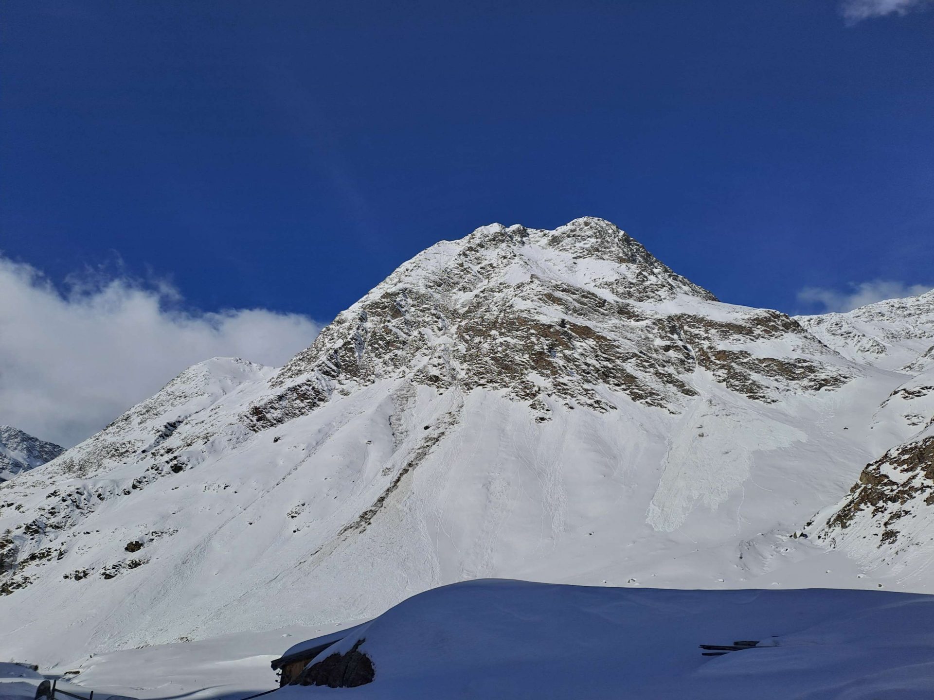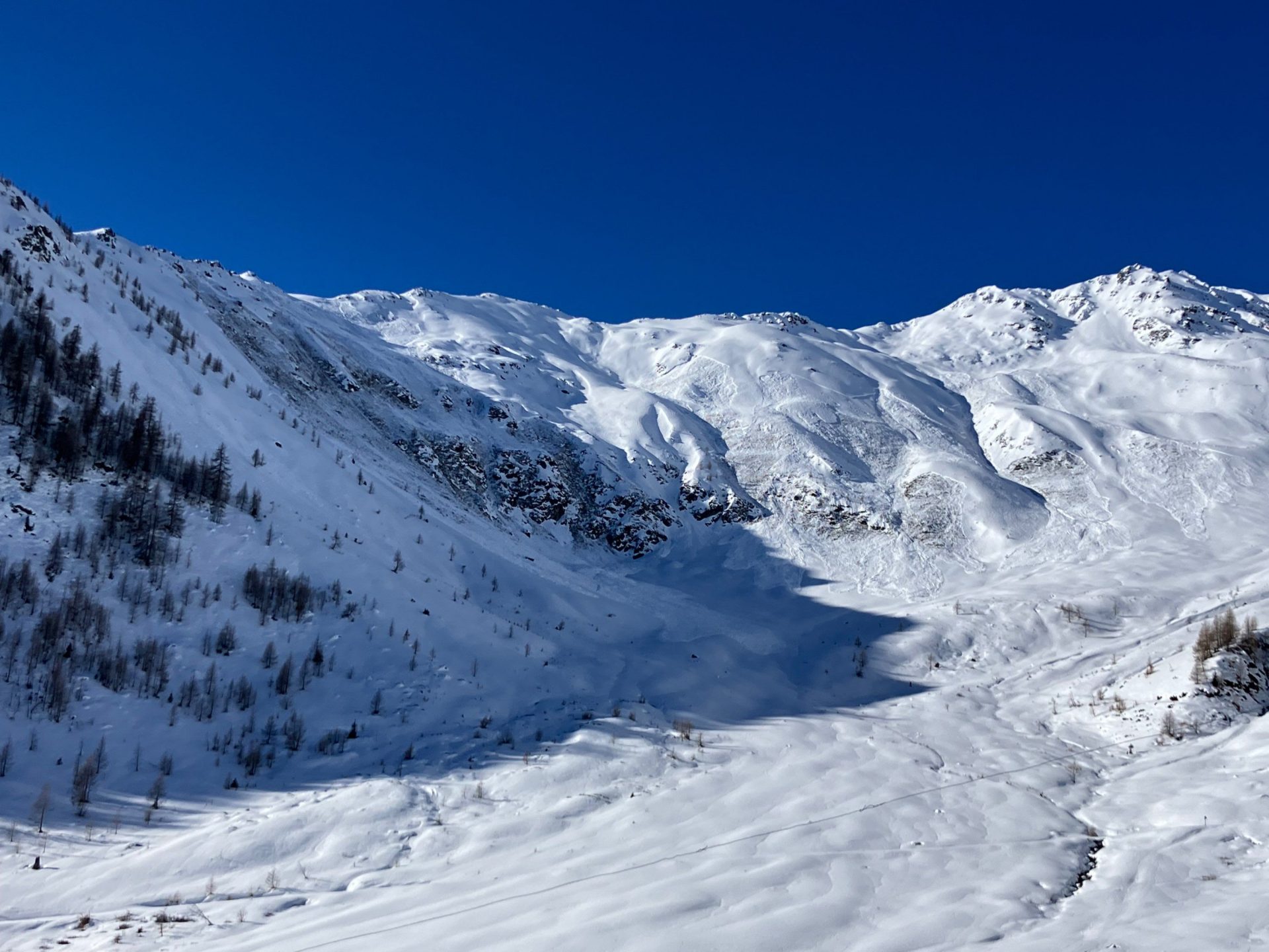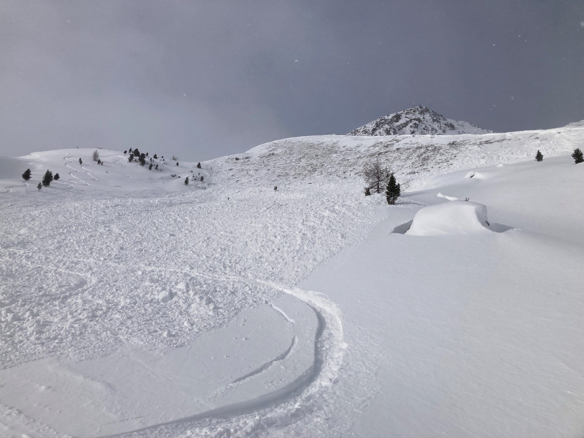 Es handelt sich um eine mittelgroße Lawine (Größe 2), die sich an einem Nordosthang auf ca. 2700 m mit einer Neigung zwischen 41° und 45° gelöst hat.