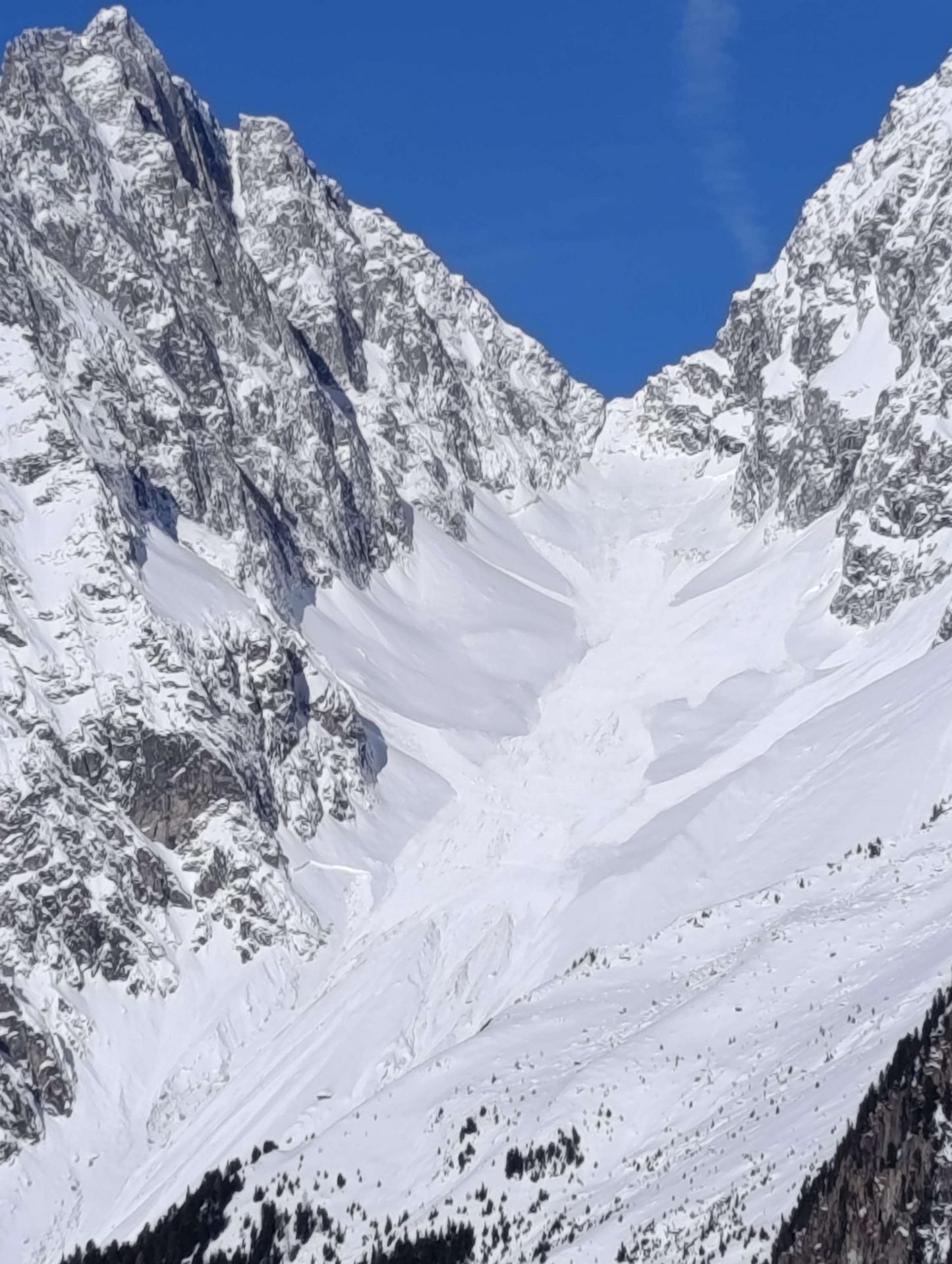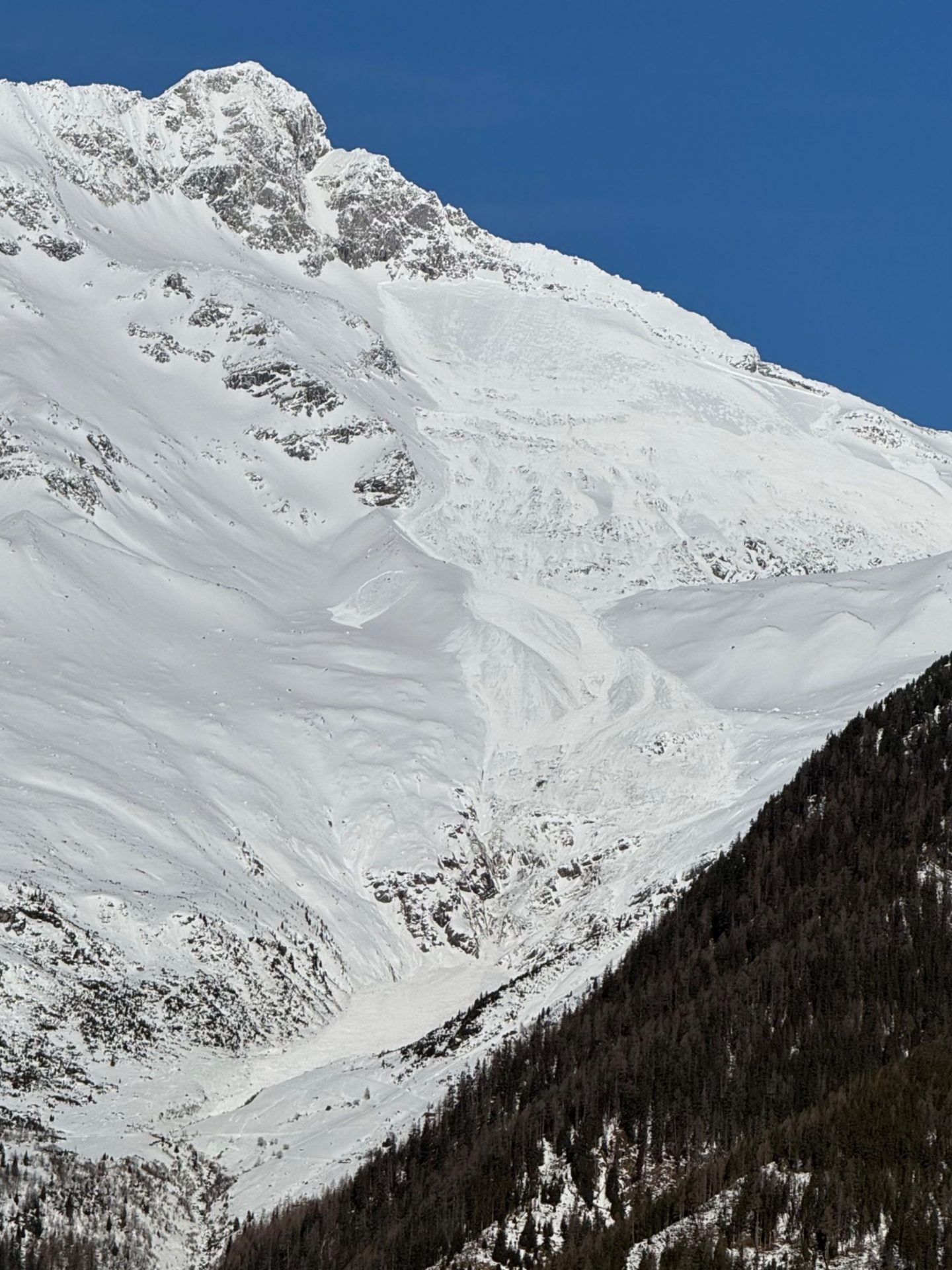 Es handelt sich um eine große Lawine (Größe 3), die sich an einem Südosthang auf ca. 2450 m mit einer Neigung zwischen 36° und 40° gelöst hat.