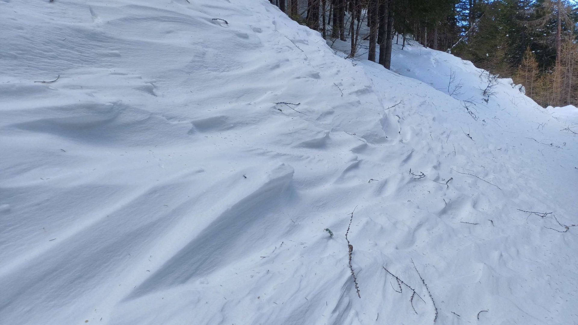 Der Wind hat den Neuschnee intensiv verfrachtet, wodurch sich an allen Expositionen oberhalb der Waldgrenze Triebschneeansammlungen gebildet haben, die sich auf einer schwachen und instabilen Altschneedecke abgelagert haben. Fast im ganzen Land wurde die Gefahrenstufe 4, große Lawinengefahr, erreicht; es handelte sich um einen Skifahrer 4er, d.h. Infrastrukturen waren nicht betroffen.
