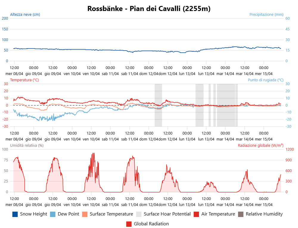 Nach dem Niederschlag vom 13. und 14. März befinden wir uns in einer Frühjahrssituation: Die Lawinengefahr ändert sich im Tagesverlauf und hängt von vielen verschiedenen Faktoren ab, die die Situation schnell ändern können (heitere oder bedeckte Nächte, Veränderung der Bewölkung und Temperaturanstieg im Laufe des Tages, Höhe der Bewölkung, Lufttemperatur, Luftfeuchtigkeit und vieles mehr).