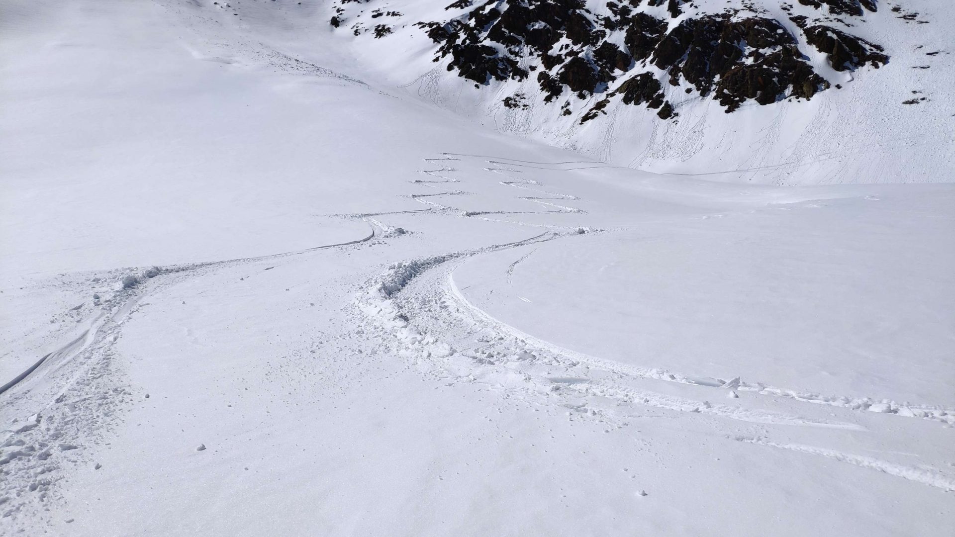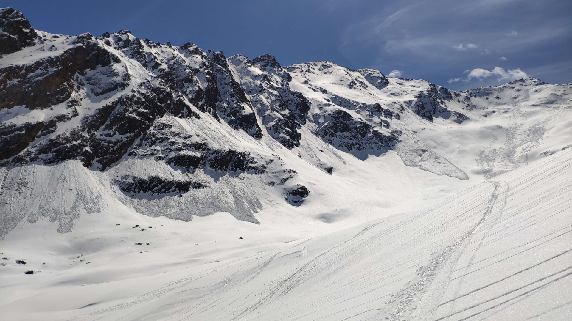 Eine Gruppe von vier Skitourengehern war in der Nähe der Berglhütte auf der Abfahrt vom Ortler, als sie von einer nassen Schneebrettlawine erfasst wurden. Zum Glück blieben alle unverletzt an der Schneeoberfläche liegen und konnten selbständig ins Tal fahren.